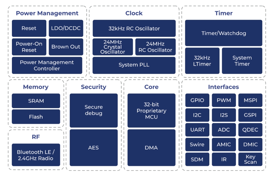 在功耗方面,TC321X系列針對電池供電設(shè)備進行了進一步優(yōu)化,適配紐扣電池等小型電源,力圖延長終端續(xù)航時間。外設(shè)接口方面,芯片集成GPIO、UART、SPI、16位ADC、DMIC/AMIC、KeyScan等資源,方便客戶在單板上實現(xiàn)按鍵輸入、音頻采集與多種傳感連接。